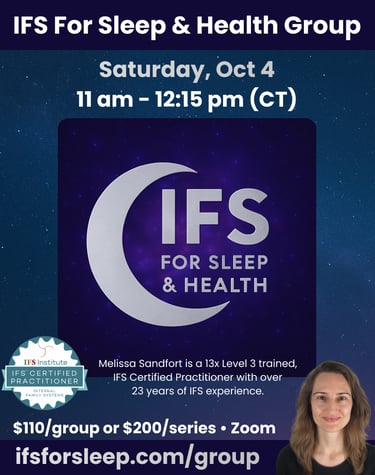 By focusing SPECIFICALLY on sleep and health issues with fellow IFS folks, you’ll be able get targeted insight into what is holding you back in making the health choices your soul is longing to make.